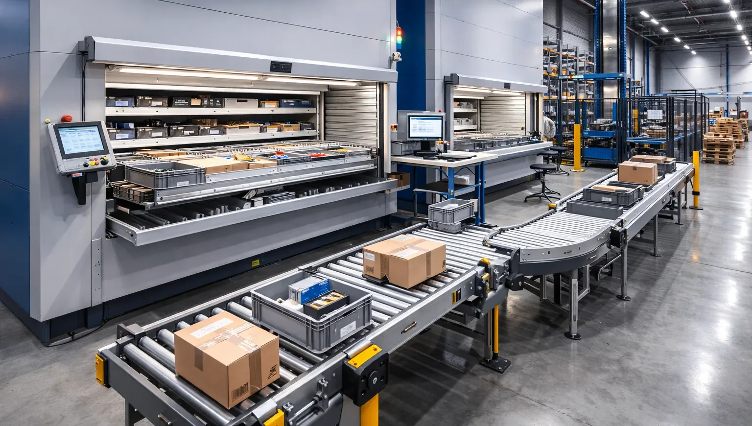 Vertical Storage Systems, commonly referred to as Vertical Lift Modules (VLM), are advanced automated storage solutions designed to maximize storage capacity while minimizing floor space. By utilizing vertical height efficiently, these systems create a compact, organized, and highly efficient storage environment. VLM systems are widely used for spare parts storage, production logistics, and controlled inventory environments where accuracy and efficiency are critical.
